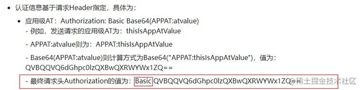 然后再将获取的应用级AT封装,在请求头header中重新构建 authorization,具体可以参考公共说明的部分文档: