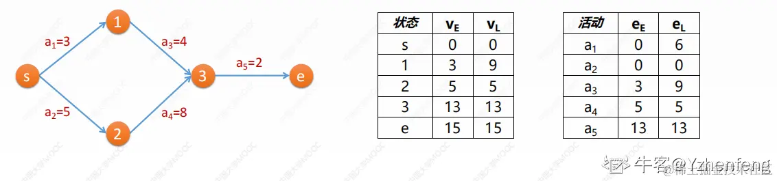 状态图里,状态1的最早发生时间要等s做完3秒后才开始到它,所以Ve为3,VL最晚发生时间为9,是因为状态3是需要上图两条线