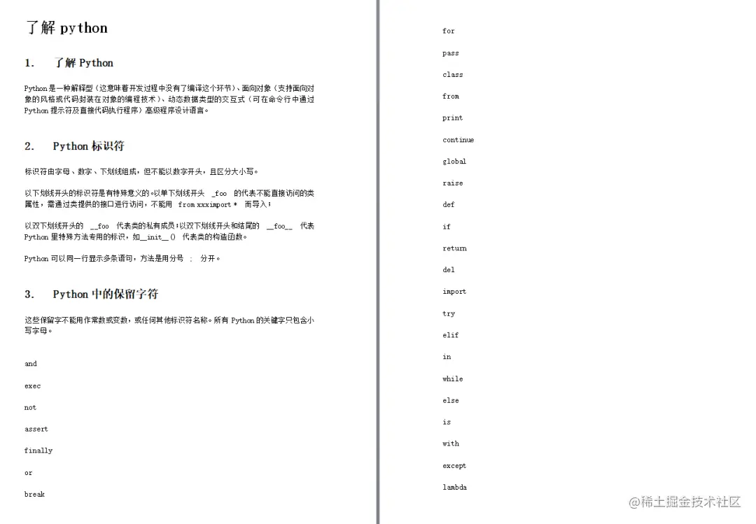 今天给大家分享一份师兄在自学过程中总结的 “python基础语法汇总笔记word版” 内容精炼全面,对于初学者来说十分有用,时不时翻看一下强化记忆,梳理知识难点。因为是可编辑文件,大家也可以把自己需要的知识点添加进去,成为自己独有的完整语法笔记。