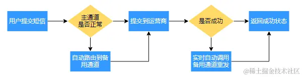 2)、为每位用户配置1主2备短信通道,并通过程序逻辑自动热切,做到用户无感知;