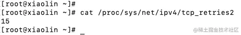 在 Linux 系统中,提供了一个叫 tcp_retries2 配置项,默认值是 15,如下图: