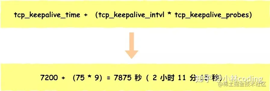 也就是说在 Linux 系统中,最少需要经过 2 小时 11 分 15 秒才可以发现一个「死亡」连接。