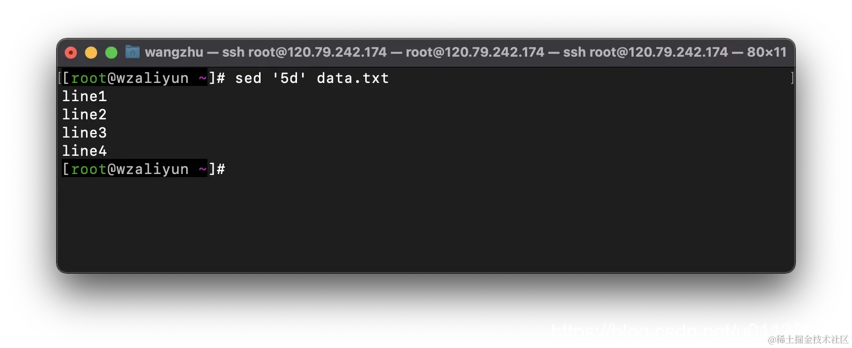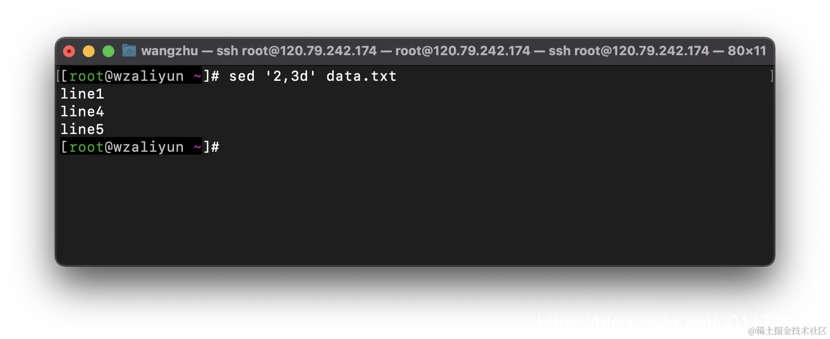a :新增, a 的后面可以接字串,而这些字串会在新的一行出现(目前的下一行)~ c :取代, c 的后面可以接字串,这些字串可以取代 n1,n2 之间的行! d :删除,因为是删除啊,所以 d 后面通常不接任何咚咚; i :插入, i 的后面可以接字串,而这些字串会在新的一行出现(目前的上一行); p :打印,亦即将某个选择的数据印出。通常 p 会与参数 sed -n 一起运行~ s :取代,可以直接进行取代的工作哩!通常这个 s 的动作可以搭配正规表示法!例如 1,20s/old/new/g 就是啦! -