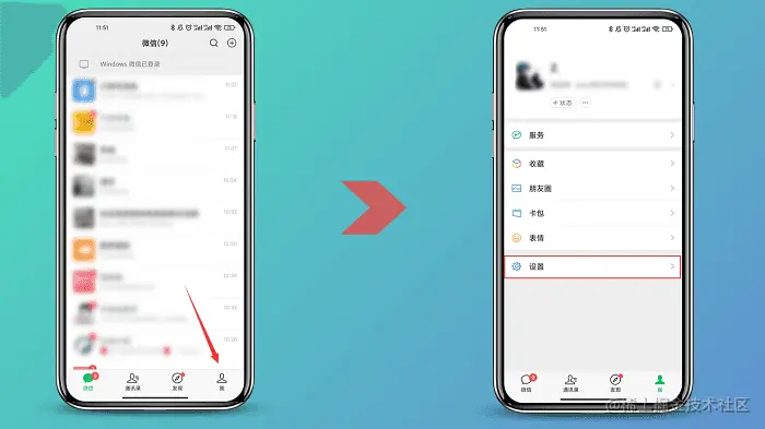 第1步:这个方法是在手机的微信上操作的,首先进入手机微信,随后来到手机微信个人中心这里,也就是【我】,进入里面的“设置”