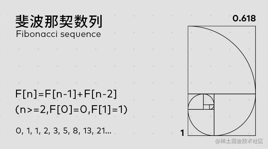 斐波那契数列由 0 和 1 开始,之后的斐波那契数就是由之前的两数相加而得出。而且当数值趋向于无穷大时,前一项与后一项的比值越来越逼近黄金分割 0.618。许多的生物构成都和斐波那契数列有正相关。