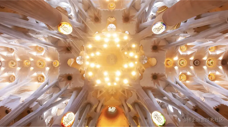 圣家堂内部的立柱犹如树干,向上延伸出若干树枝,支撑起教堂巨大的拱顶——这让我感觉这里的建筑不是造出来的,而是像生物自然生长而成的,充满了「向上生长的力量」。