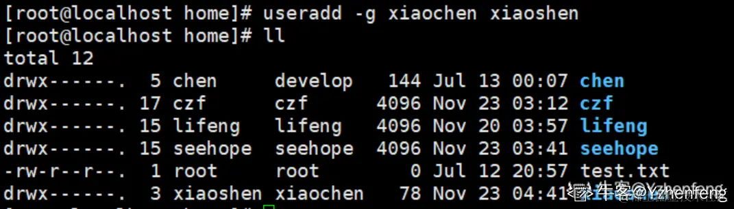 当创建用户成功后,会自动的创建和用户同名的家目录
