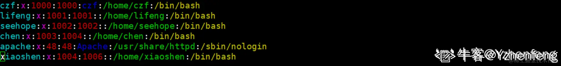 · 每行的含义:用户名:口令:用户标识号:组标识号:注释性描述:主目录:登录shell
