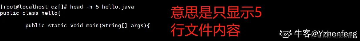 head -n 5 文件路径(功能描述:查看文件头5行内容,5可以是任意行数)