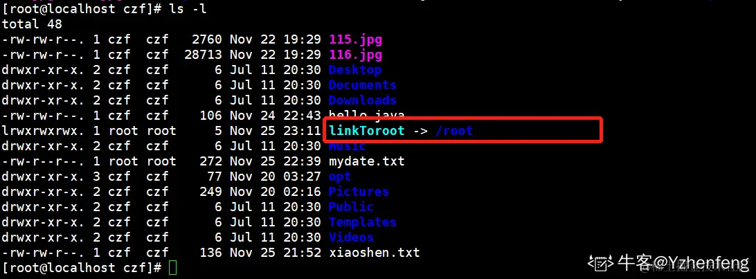 案例1:在/home目录下创建一个软连接linkToRoot,连接到/root目录