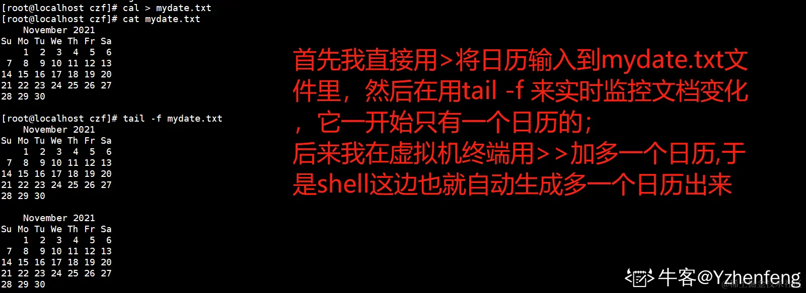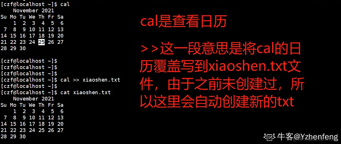 案例2:将当前日历信息.追加到/home/mycal文件中[提示cal]