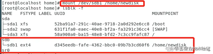 设置可以自动挂载(永久挂载,当你重启系统,仍然可以挂载到/home/newdisk)