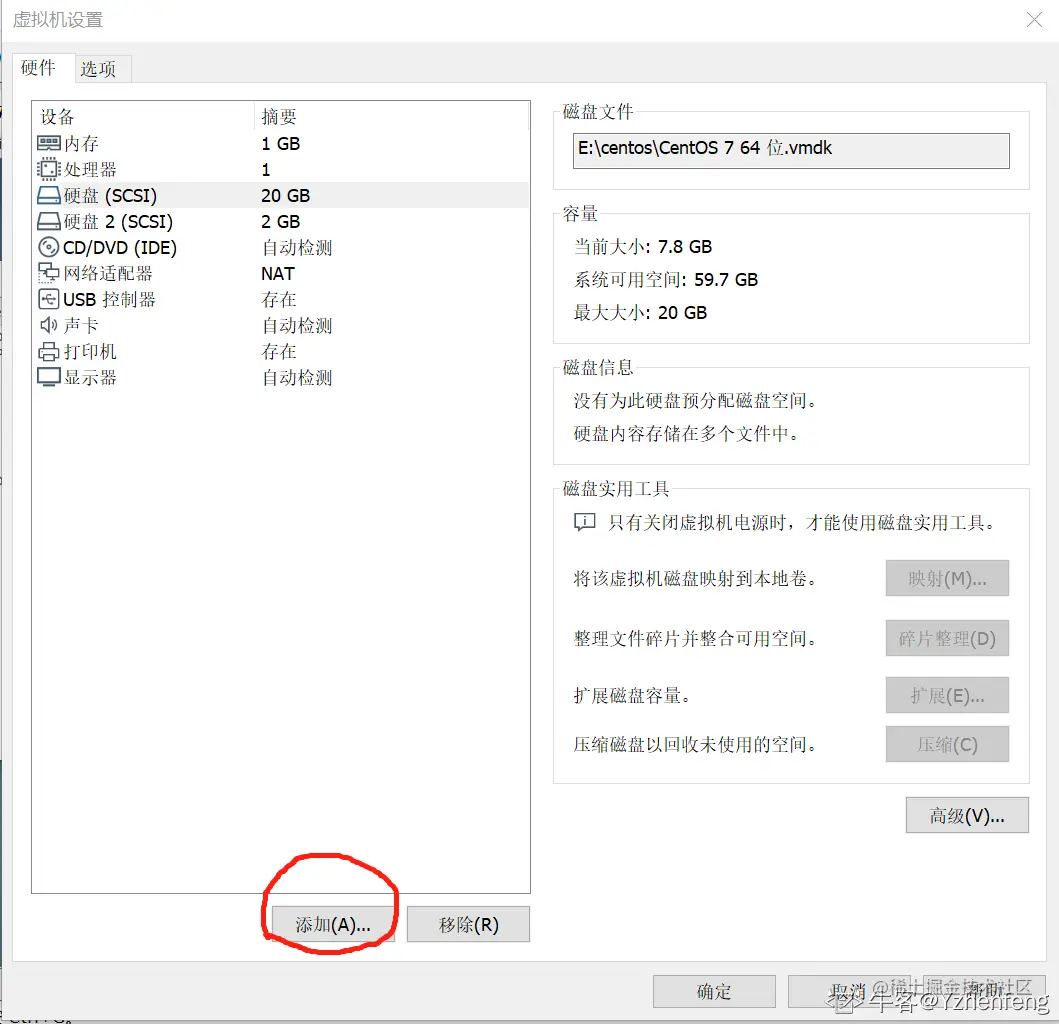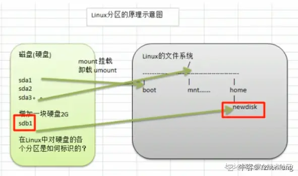 下面我们以增加一块硬盘为例来熟悉下磁盘的相关指令和深入理解磁盘分区、挂载、卸载的概念。