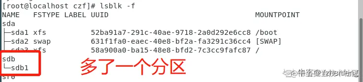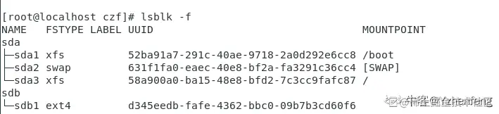 永久挂载:通过修改/etc/fstab实现挂载添加完成后