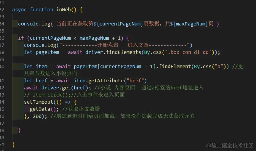 let item = await pageItem[currentPageNum - 1].findElement(By.css("a")) //根据章节数进入小说页面