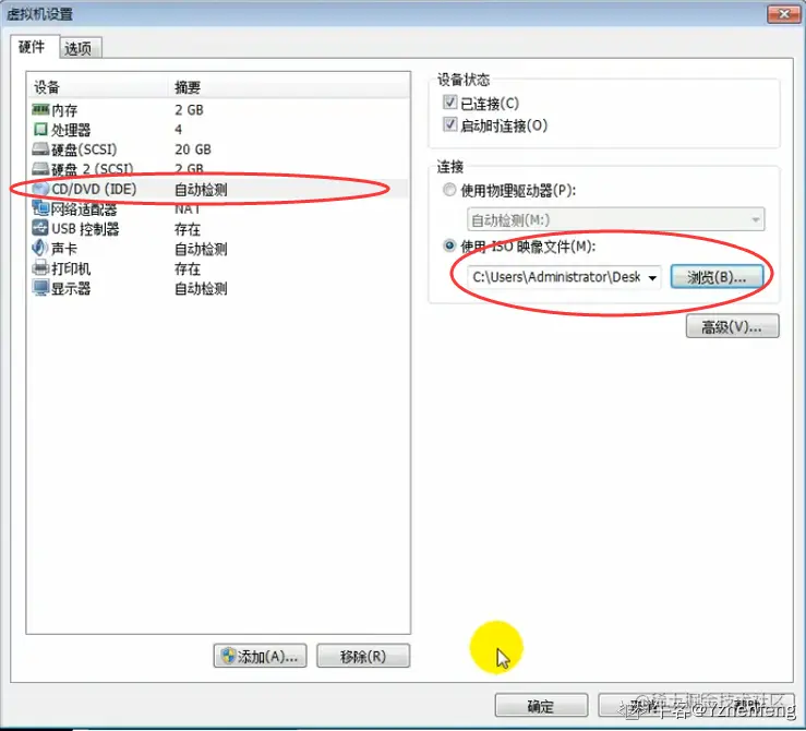 虚拟机可以按照以下方式挂载iso