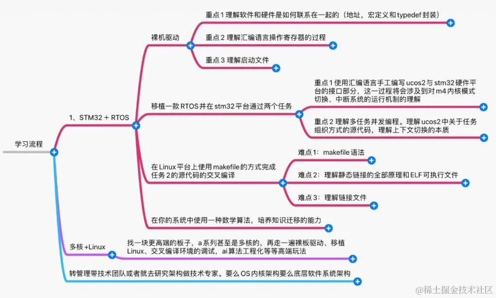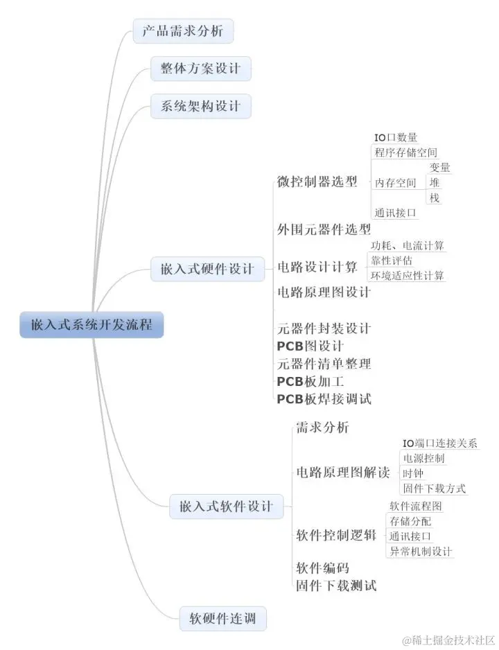 - 需要熟悉一种处理器、MCU的硬件组成,架构、IO及外设的应用、系统时钟、运行频率、存储代码空间、堆、栈这些和编程相关的概念和知识一定要搞清楚。