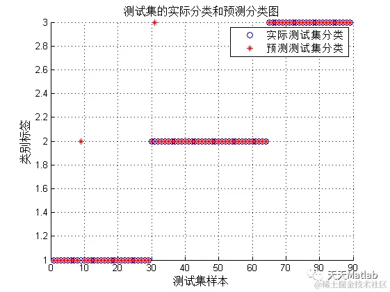 % 测试集的实际分类和预测分类图