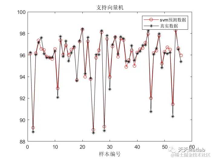 legend('svm预测数据','真实数据')