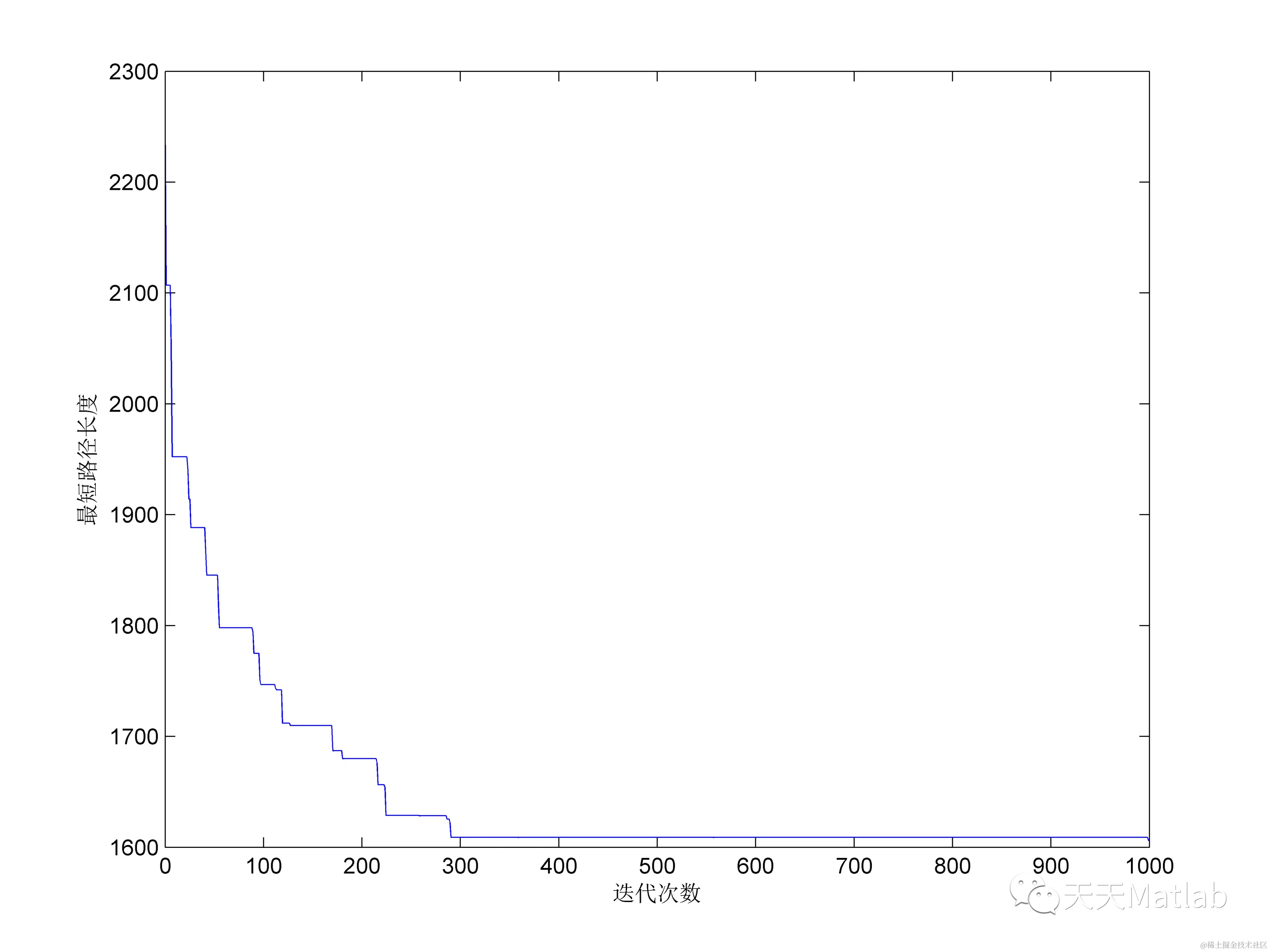 xlabel('迭代次数'); ylabel('最短路径长度');