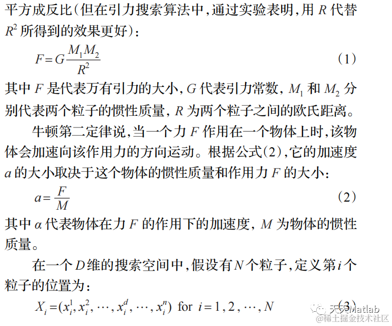 2009,伊朗的Esmat Rashedi等人基于万有引力定律和粒子间相互作用提出了一种新型的优化算法——引力搜索算法(Gravitational Search Algorithm,GSA)。具体原理如下: