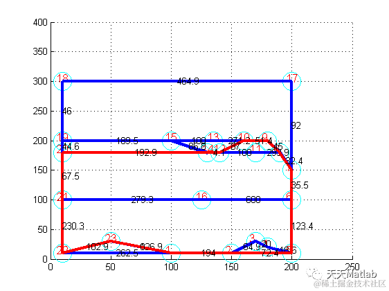 text((first_address(i,1)+first_address(j,1))/2,(first_address(i,2)+first_address(j,2))/2,num2str(length_address(i,j)));%标注线段距离