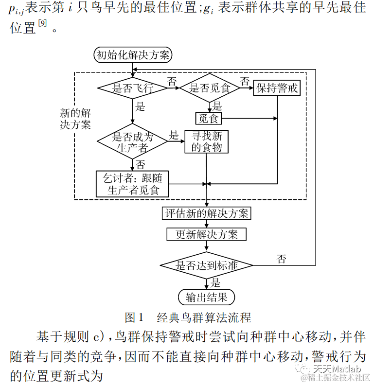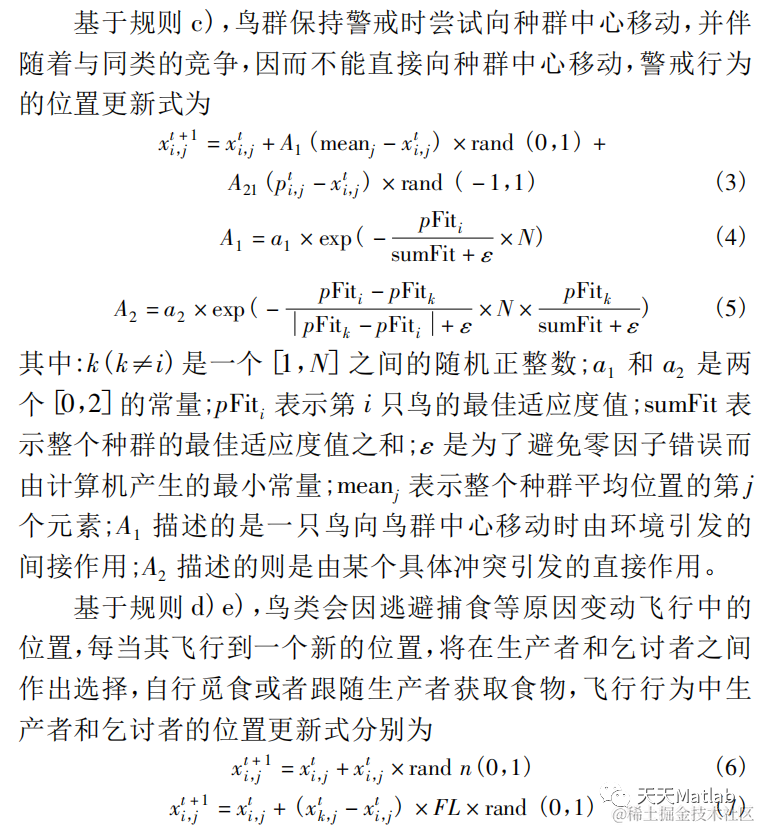 鸟群算法是对鸟群群体行为和群体互动的简化,它模仿的是鸟群的飞行行为、觅食行为和警戒行为,并用这种群体智慧解决最优化问题。鸟群算法可以被如下规则简化描述: