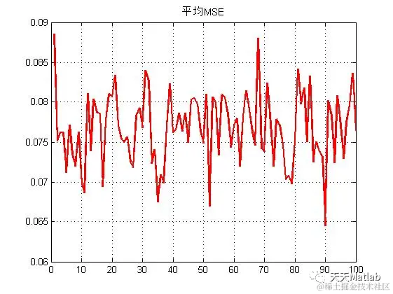 figure,plot(1:kk,MSE_P,'r','linewidth',2),title('平均MSE');grid on;