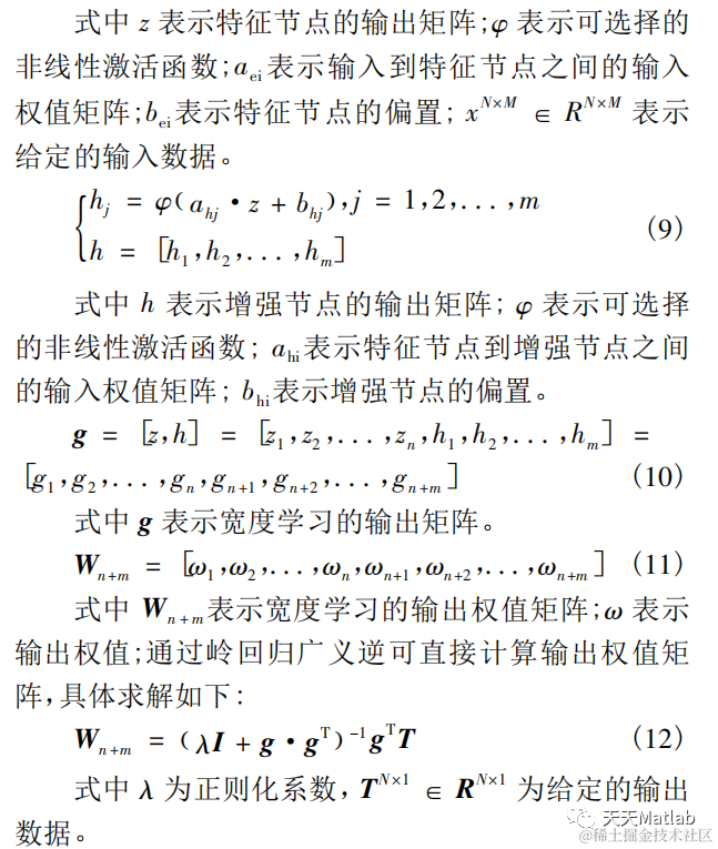 宽度学习系统( BLS) 的基本思想是利用稀疏自动编码器产生最优输入权值矩阵,对输入样本进行线性变换后,形成特征节点,再对特征节点经过激励函数非线性变换后获得增强节点。通过合并特征节点输出和增强节点输出形成宽度学习系统的输出矩阵。宽度学习系统的模型可表示为:
