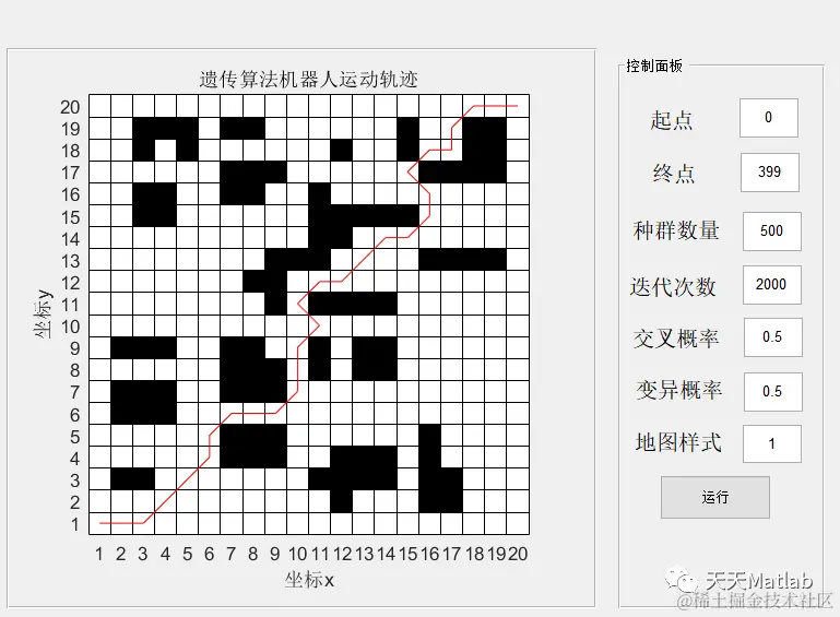% 基于遗传算法的栅格法机器人路径规划