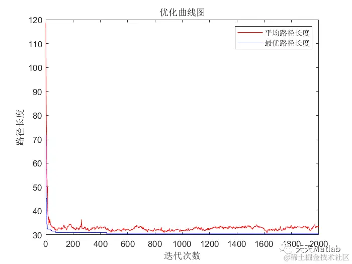 % 画每次迭代平均路径长度和最优路径长度图