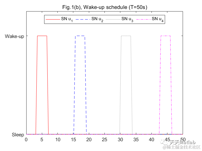 title('Fig.1(b), Wake-up schedule (T=50s)');