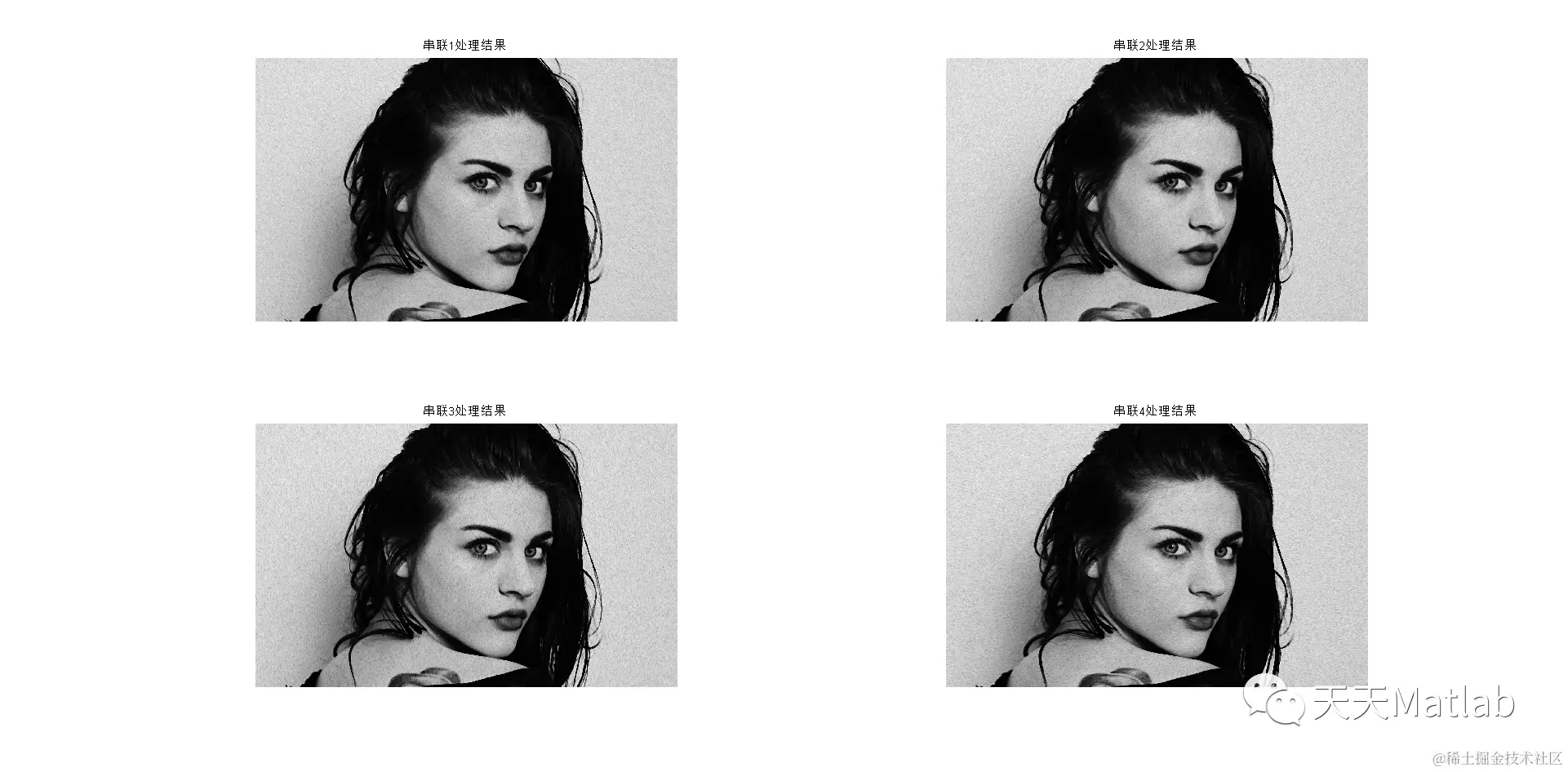 subplot(1, 2, 2); imshow(Igo, []); title('并联去噪图像');