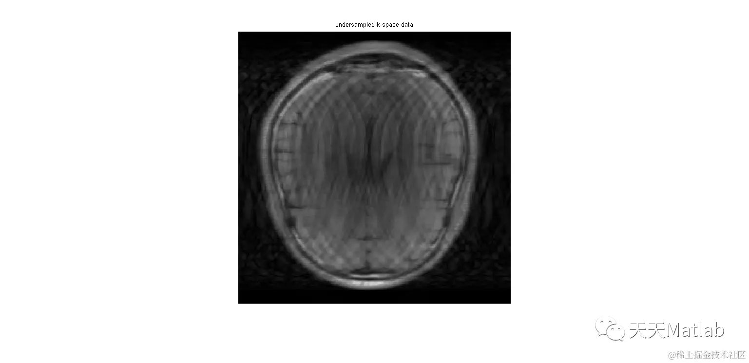 figure,imshow(abs(ifft2c(paramSIDWT.U'*y1))); title('undersampled k-space data')