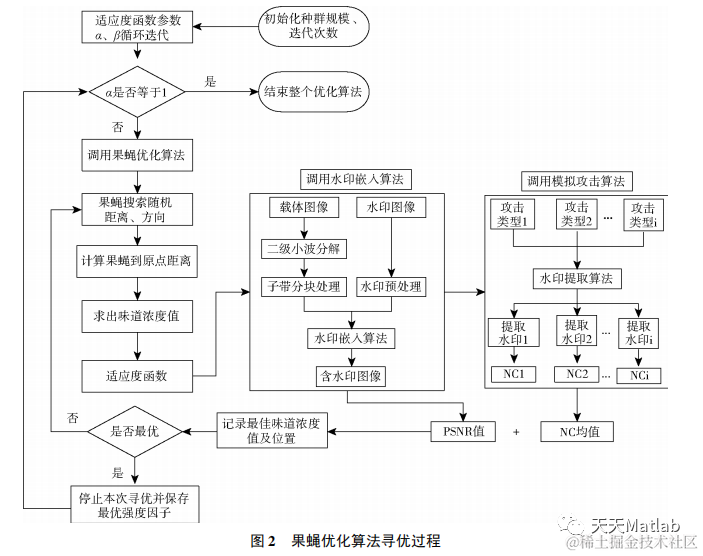 针对嵌入水印强度的不确定性,提出了一种利用果蝇优化算法并结合小波变换与奇异值分解的数字图像水印嵌入算法。首先,利用小波变换对载体图像进行二级小波分解,然后对 LL2 子带进行4 × 4 分块并进行奇异值分解以提高嵌入水印的稳定性,最终将水印信息以一定的强度嵌入到分解的最大奇异值中。果蝇优化算法综合考虑水印嵌入算法的鲁棒性与不可见性之间的矛盾,并结合水印嵌入方案确定最佳嵌入强度,首先根据影响水印性能的指标定义适应度函数,并对该函数的参数进行优化,确定了最佳的适应度函数,然后再应用果蝇优化算法寻找嵌入水印强度的最优解。最后通过仿真实验对该水印方案的性能进行测试与分析,实验结果表明,当嵌入水印图像的峰值信噪比达到 40 dB 时,提取水印的平均 NC 值能达到 0. 98 以上。
