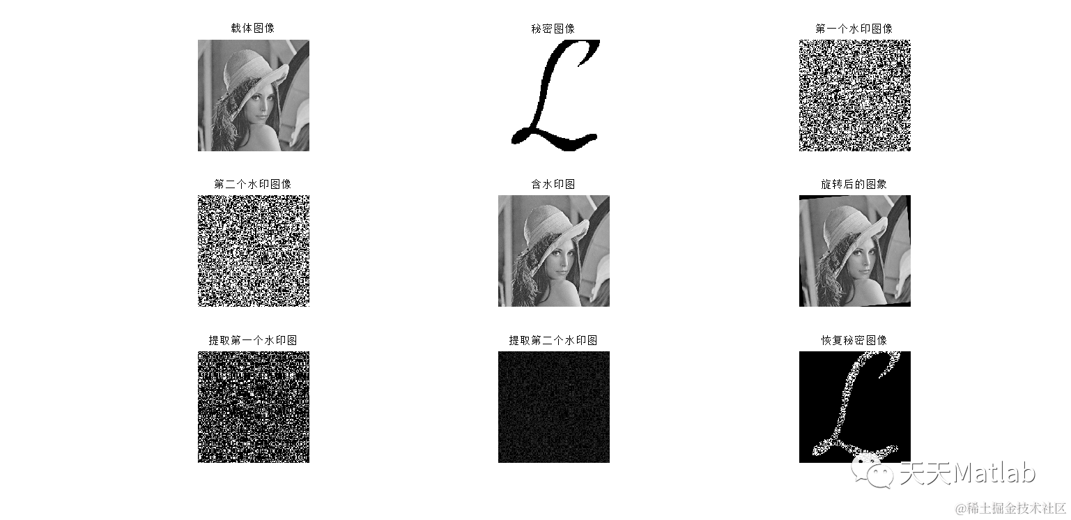 subplot(339);imshow(A12);title('恢复秘密图像');