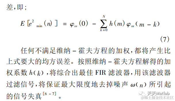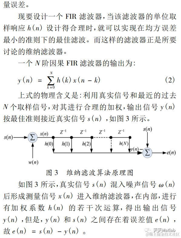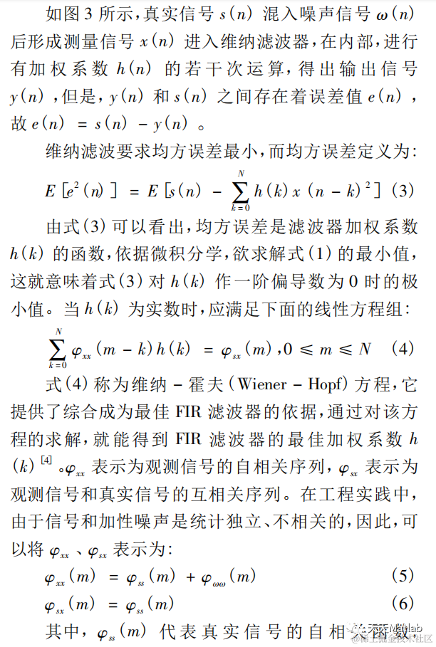 维纳滤波是诺伯特*维纳在二十世纪四十年代提出的一种滤波器,是根据全部过去的和当前的观察数据 来估计信号的当前值,它的解是以均方误差最小条件下所得到的系统的传递函数 H(z)或单位样本响应 h(n)的形式 给出的,因此维纳滤波器也称为最佳线性滤波器.本论文介绍了维纳滤波器的原理并运用 Matlab 软件进行仿真分 析.论文仿真分为两大块,第一:不同信号加入白噪声之后输入维纳滤波器,探讨噪声为白噪声时维纳滤波器对 不同种类信号的滤波降噪效果.第二:选取非周期音频信号加入白噪声之后输入维纳,经典 fir 及自适应滤波器, 对比维纳滤波器与其他滤波器降噪效果.从这两个方面实验展现了维纳滤波器自身特性,得出维纳滤波器具有较 好的性能.
