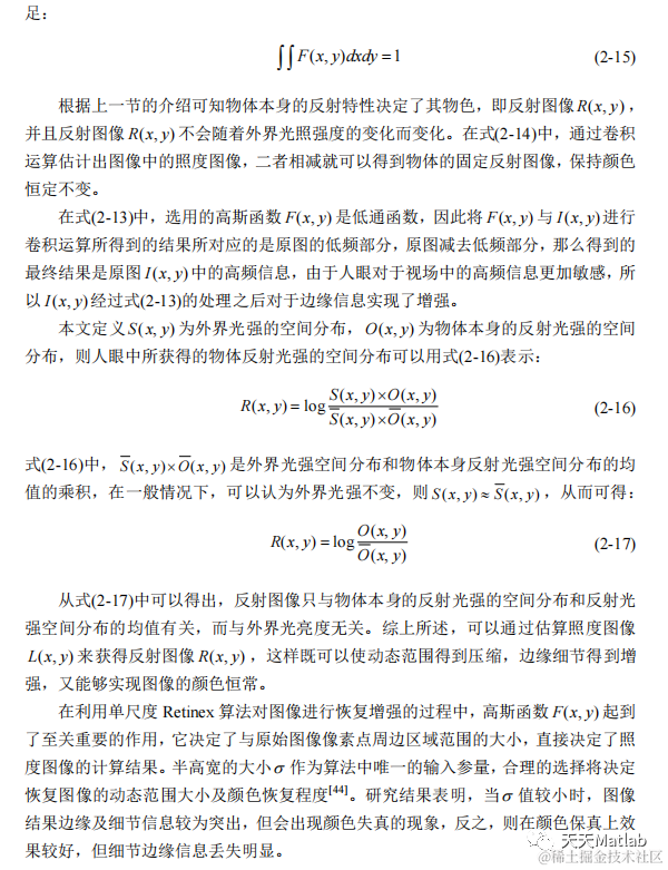 Retinex 是由 Edwin.H.Land 提出的阐述人类的视觉系统如何对捕获到的视觉信息进行处理并在大脑皮层中形成影像的模型。Retinex 理论解释了为何在外界光照强度不同的条件下,视觉颜色还是恒定的。Retinex 理论认为人类的大脑皮层所形成的关于目标物体的颜色信息只与目标物体表面的反射性质有关,与外界光照强度无关。人类的视觉系统能够将所获取的视觉信息分为外界光照变化信息和物体表面的本质信息,前者变化表现为平滑的照明梯度曲线,后者变化表现为突变的照明梯度曲线。通过计算外界光照强度的变化信息就可以获得物体表面的本质信息,从而获得物体的本来面貌特征,形成颜色恒常性。Land 通过实验证明了人类对于颜色的感知在一定程度上与外界光的光谱无关。Land[38]认为人类具有视网膜皮质系统,能够对三种锥体细胞所获得的视觉信息进行处理,它能够消除外界光照的影响,只保留目标物体表面的特征信息。视网膜皮质系统通过比较获得的图像中各个点的相对反射值并综合三种锥体细胞的结果,从而产生颜色恒常性。Retinex 理论很好的诠释了颜色恒常性,并被大量科学研究所证实。后来,很多研究者在这一理论的基础上提出了多种算法,例如单尺度Retinex算法、多尺度Retinex算法、McCann’s Retinex 算法等等[39-40]。尽管这些算法不尽相同,但其基本原理都非常相似,都是通过对原始图像进行高斯滤波来获取照度图像,并尽量准确的获取照度图像,最后将照度图像从原始图像中分离出来,从而获得反射图像。