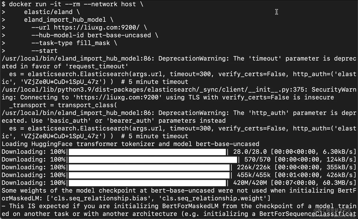 如果我们的 Elasticsearch 位于 https://192.168.0.3:9200,那么我们可以使用如下的命令来执行: