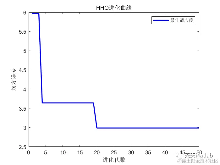 第三步 不断迭代哈里斯鹰位置优化网络,直到迭代结束形成最优个体,其中最优个体包括权值w1、w2及w3,阈值b1和b2;