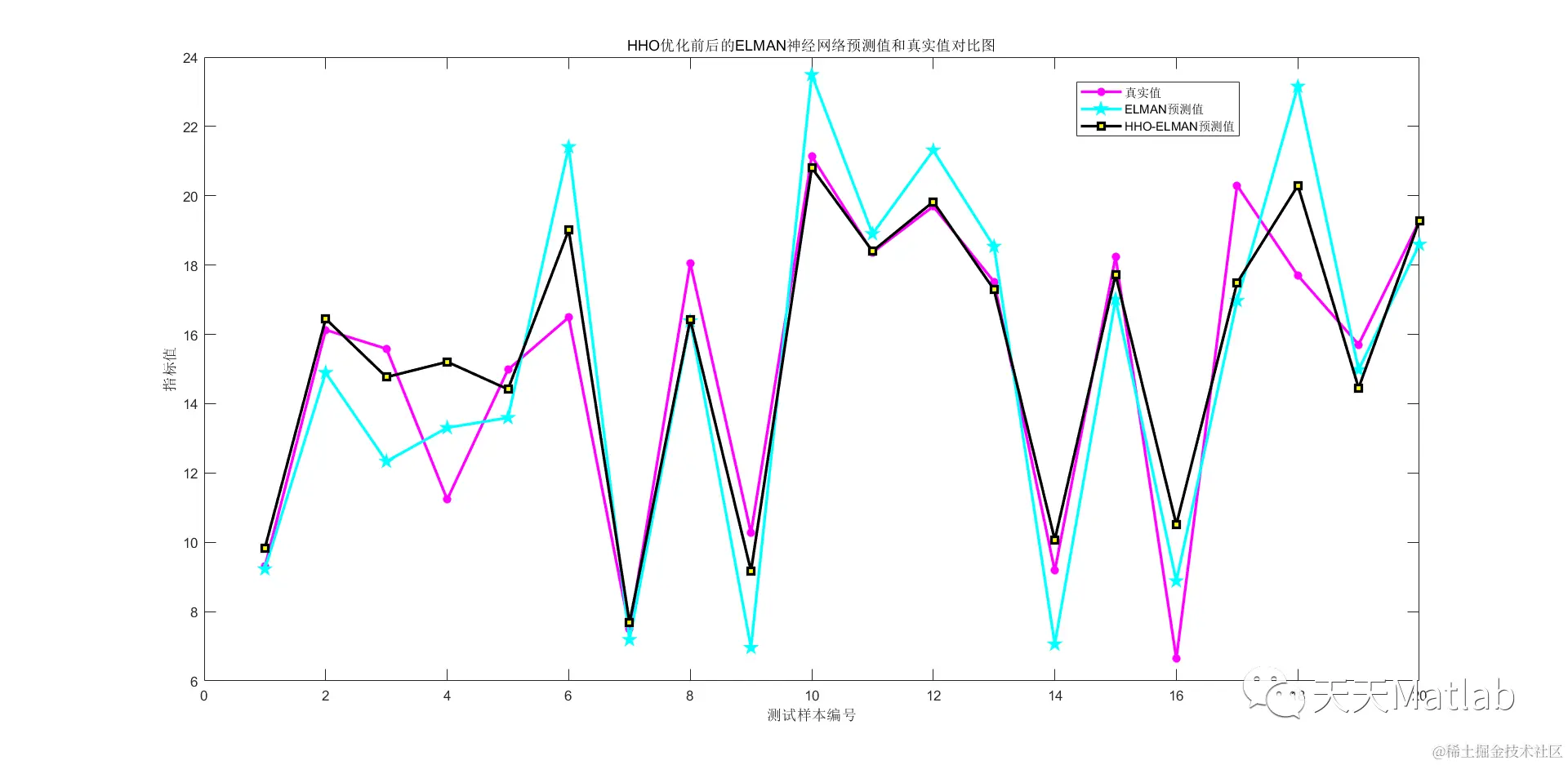 Elman 神经网络是一种局部反馈递归神经网络,包括输入层、隐藏层、承接层和输出层,由于其良好的动态记忆和时变能力,自1990年Elman首次提出以来,Elman神经网络在时间序列预测中得到了广泛的应用,但由于随机选择初始值和阈值,且采用梯度下降法寻优,其网络学习速度较慢且预测的精度比较低。本文利用 HHO优化 Elman神经网络的初始权值及阈值,提高了 Elman 神经网络的预测精度。