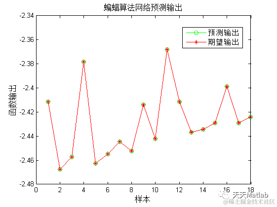 title('蝙蝠算法网络预测输出','fontsize',12)