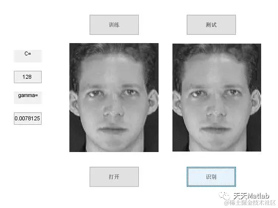 通过 PCA 算法提取特征向量后,需要利用分类器根据样本的特征向量进行分类处理,以判别当前人脸的身份。本实验中使用了近年非常流行的SVM(支持向量机)分类器。分类器的工作分两步 :训练和测试。先对样本进行学习,将样本进行预判别,将提取的特征向量进行学习和分类,将类分好后,再将测试对象经过分类器即可将测试对象进行分类判别,对于本实验来说,也就实现了人脸的识别。传统的分类器只考虑对训练样本的拟合情况,以最小化训练集上的分类错误为目标,通过提供充足训练样本来提高分类器在测试集上的识别率。因此在训练样本有限的情况下,即在小训练样本时,传统分类器并不能保证有效的分类精度。SVM 的分类思想是以结构化风险最小化为基础,兼顾训练误差与测试误差的最小化,具体体现在分类模型和模型参数的选择上。可以在小样本问题方面有效地保障分类精度。非线性 SVM(非性线支持向量机)的思路是 :寻找一个从低维到高维的映射空间,使得原来低维空间不易区分的特征,投射到高维度空间使其可分性更高。而在高维特征空间中求解支持向量机的超平面,投影回原低维空间时就呈现出一个非线性的曲面,因此称之为非线性支持向量机。非线性支持向量机的关键是如何从低维度映射到高维度,该映射关系被称为核函数,理论上需要满足 Mercer 定理(任何半正定的函数都可以作为核函数)。本文使用目前主流的 RBF(径向基核函数),即实现的是基于 RBF 的支持向量机分类器。