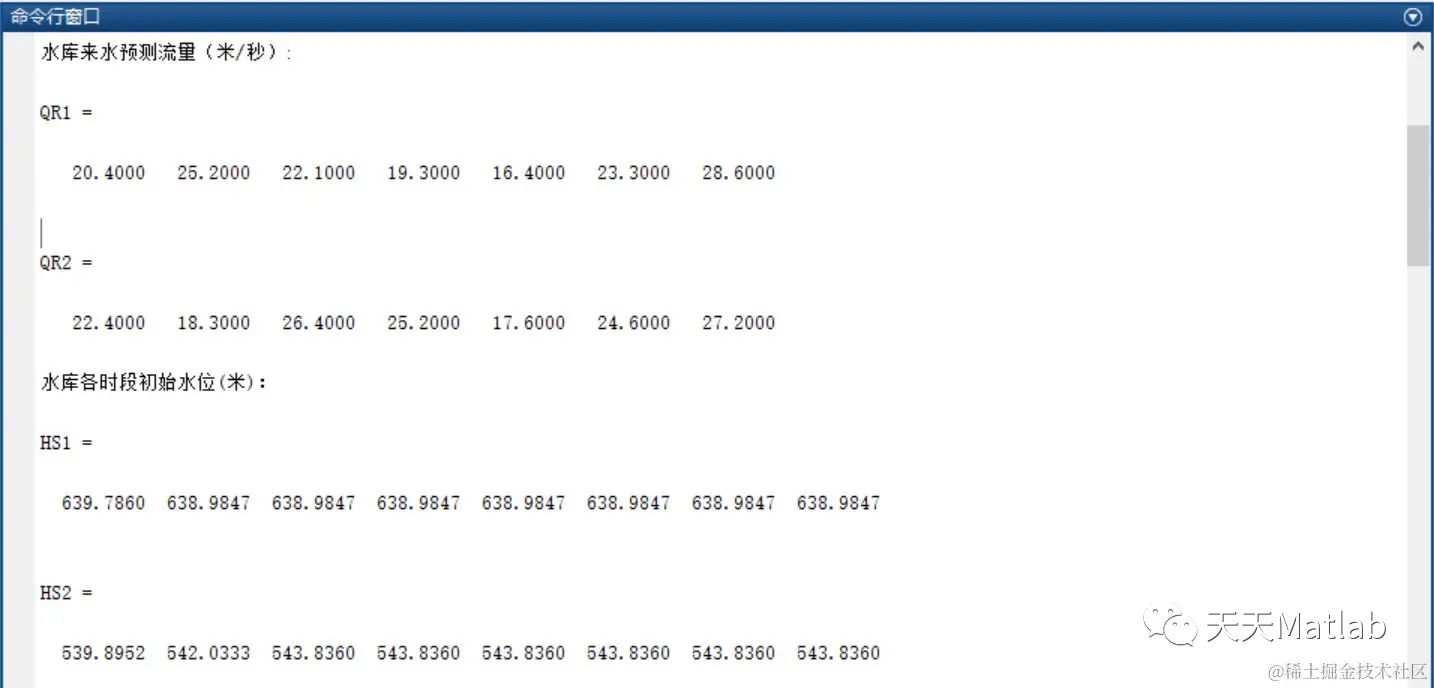 disp('水库来水预测流量(米/秒):')