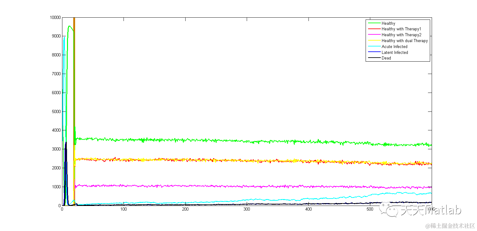 legend( 'Healthy', 'Acute Infected', 'Latent Infected', 'Dead', ...