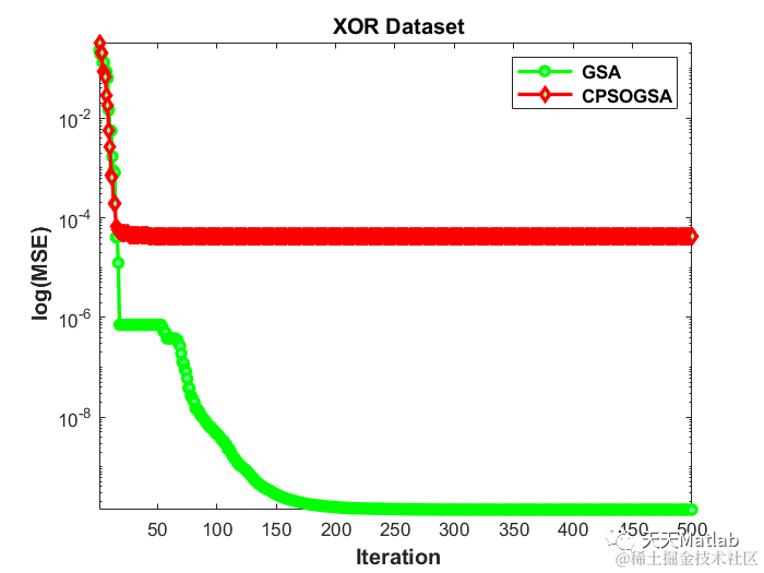 semilogy(1:Max_iteration,GlobalBestCost,'DisplayName','CPSOGSA', 'Color', 'r','Marker','diamond','LineStyle','-','LineWidth',2,...