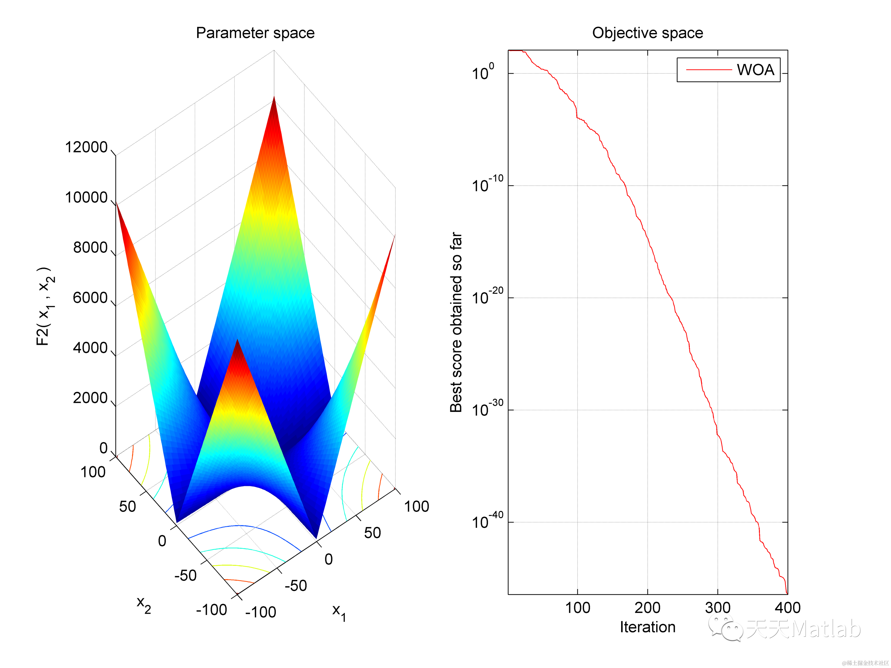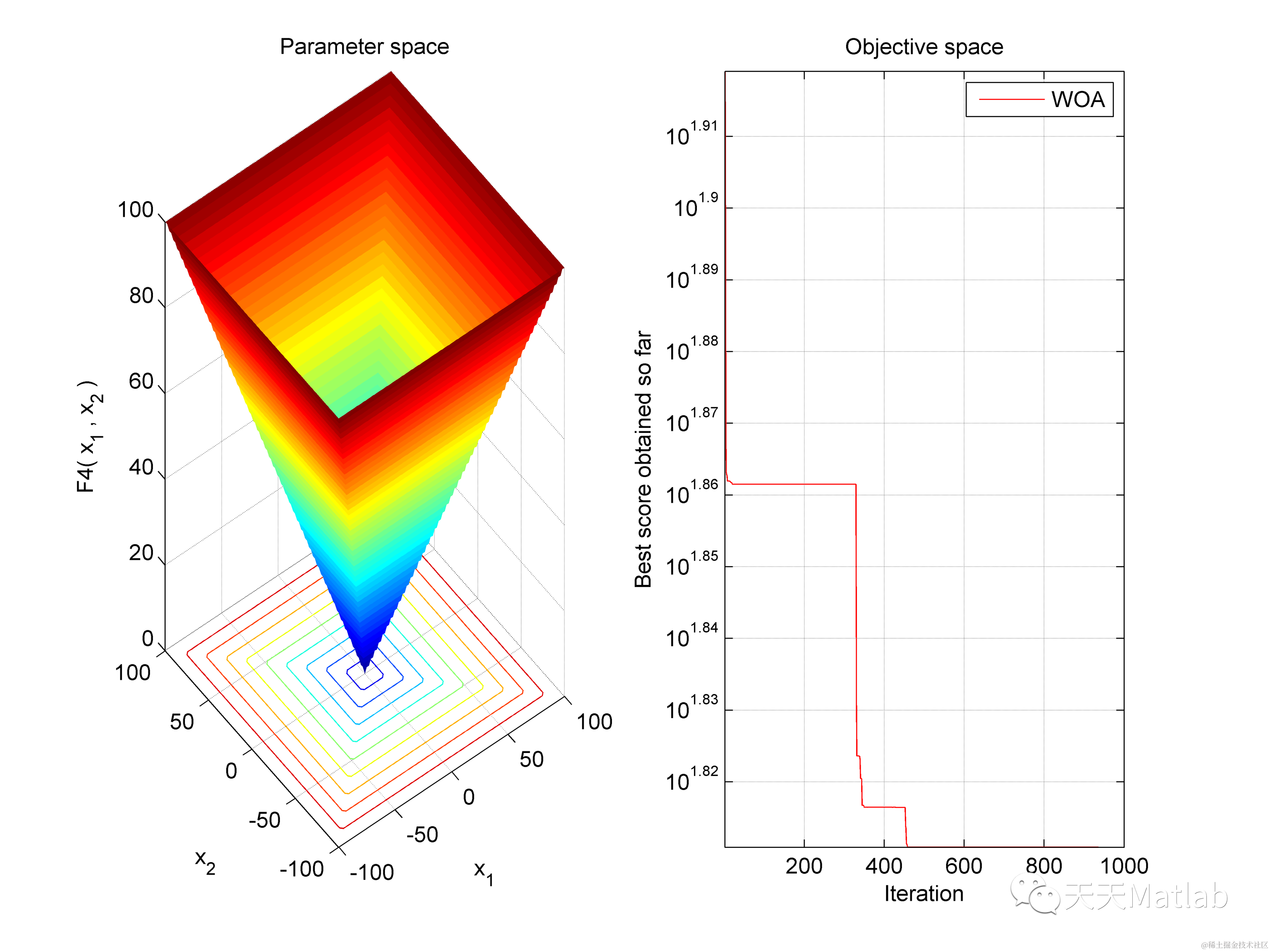 display(['The best optimal value of the objective funciton found by WOA is : ', num2str(Best_score)]);