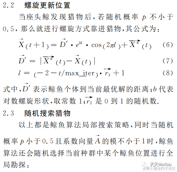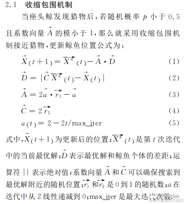 2016年 Mirjalili等 人通过模仿座头鲸气泡网狩猎策略提出了鲸鱼优化算法(WhaleOptimiza-tionAlgorithm,WOA)。基本原理: