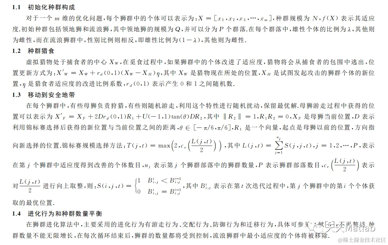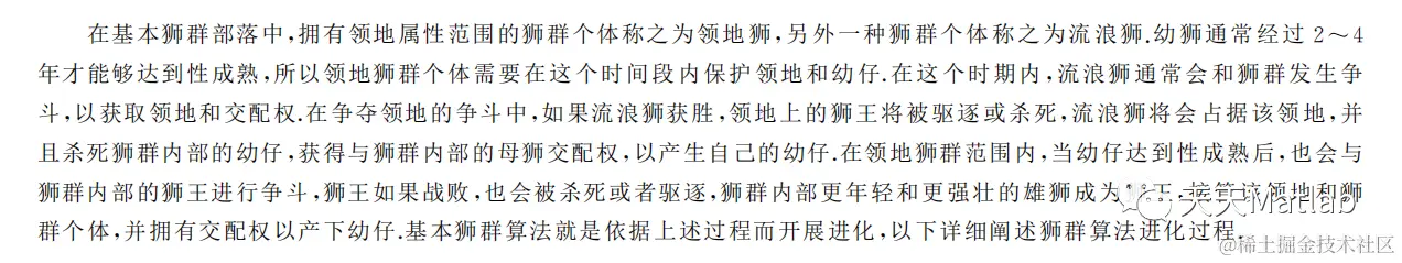 狮群优化算法(Loin Swarm Optimization, LSO),是于2018年提出的一种新型智能优化算法。基于狮群中狮王、母狮及幼狮的自然分工,模拟狮王守护、母狮捕猎、幼狮跟随3种群智能行为,提出群体智能算法——狮群算法.算法中不同种类的狮子位置更新方式不同.遵循自然界生物"适者生存"的竞争法则,狮王守护领土,优先享用食物,母狮合作捕猎,幼狮分为学习捕猎、饥饿进食和成年被驱逐.狮子位置更新方式的多样化保证算法快速收敛,不易陷入局部最优.最后,将算法应用于6个标准测试函数优化问题,并对比粒子群算法、骨干粒子群算法,测试结果表明,文中算法收敛速度较快,精度较高,能较好地获得全局最优解.