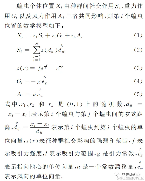 蝗虫算法( Grasshopper Optimization Algorithm,GOA ) 是 由 Saremi 等[1]于2017 年提出的一种元启发式仿生优化算法。具体原理如下: